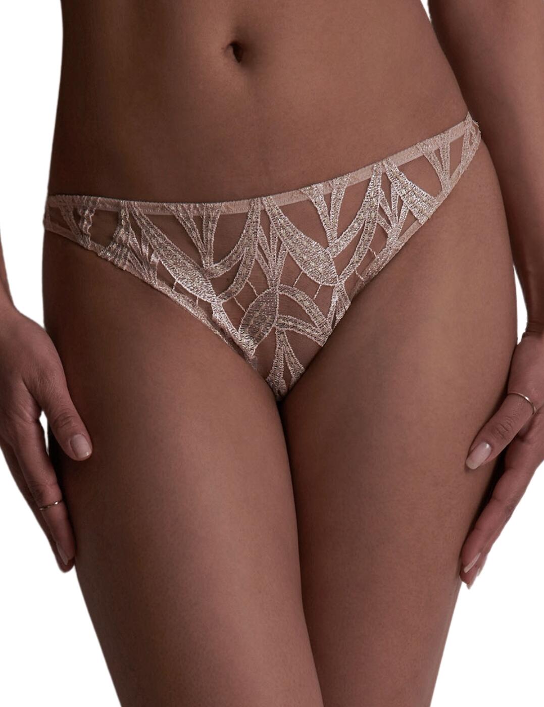 Presenting Aubade My Desire, the perfect Italian brief for women seeking luxury in their lingerie collection. Featuring elegant graphic embroidery, pearlescent lurex, gold-tone jeweling, and metallic details, this low-rise brief offers both comfort and extravagance. With moderate rear coverage and sheer tulle for a seductive fit, it provides a flattering silhouette. Matching coordinates are available for a complete, glamorous set.