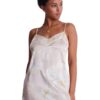 Lounge in luxury with the Toi Mon Amour collection by Aubade. This top features a flirty plunging neckline that highlights your curves and decolletage. The playful scalloped lace trims add femininity to this piece. Adjustable shoulder straps allow you to find your most comfortable fit. Thanks to the silk fabric this top will keep you cool and comfortable night after night.