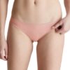 Elevate your style with the sophisticated and seductive Calvin Klein Seductive Comfort thong. Designed with a minimalist appeal, its mid-rise waist provides the perfect fit to flatter your shape in total comfort. With minimal rear coverage, this thong boasts delicate lace detailing along the sides with scalloped edges that add a touch of femininity to the sheer design. Providing a luxurious finishing touch, it also features the iconic Calvin Klein branded tab fused on to finish off the look. Plus, you can complete your dream lingerie set with the selection of matching items available from this collection.
