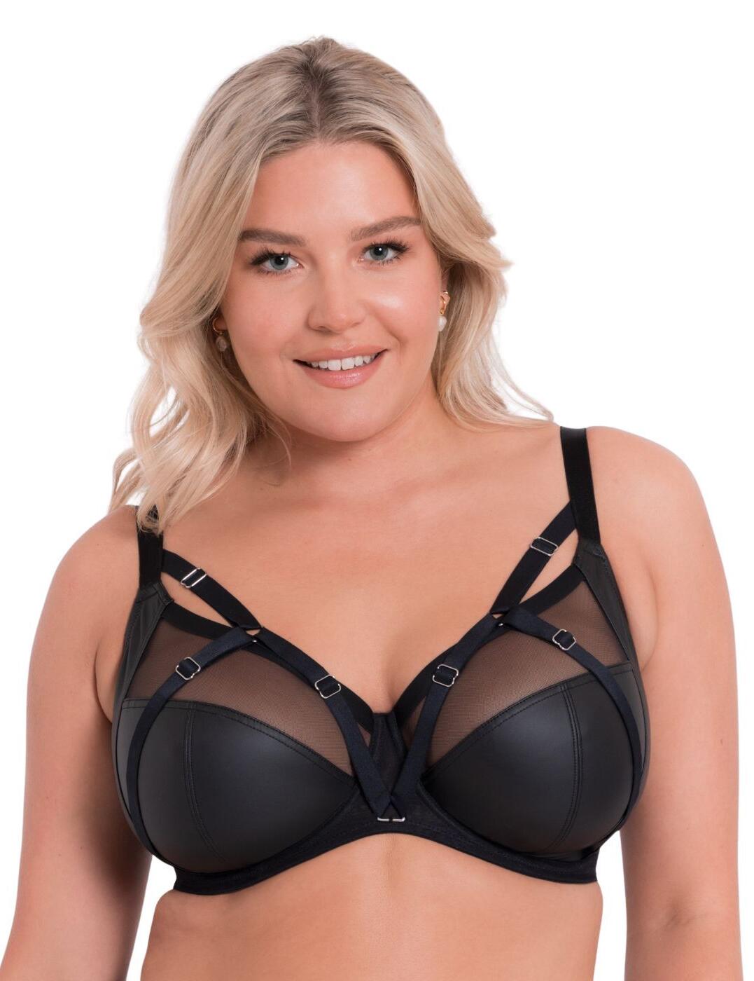 Expand your lingerie with daring looks such as the Curvy Kate Enclose full-cup bra. Its plunging neckline offers subtle sensuality, while its mesh panels add breathability and an extra touch of femininity. The faux leather cups provide a sensual flair to your outfit, while the non-padded feature ensures a natural look. With adjustable over-cup straps and adjustable shoulder straps, this bra provides bust customization for the perfect fit. Silver-plated hardware adds elegance to your lingerie collection and the hook & eye closure make sure your bra stays locked in place all day long. And if you’re looking for something to match, we also have a matching coordinate available to complete your lingerie style!