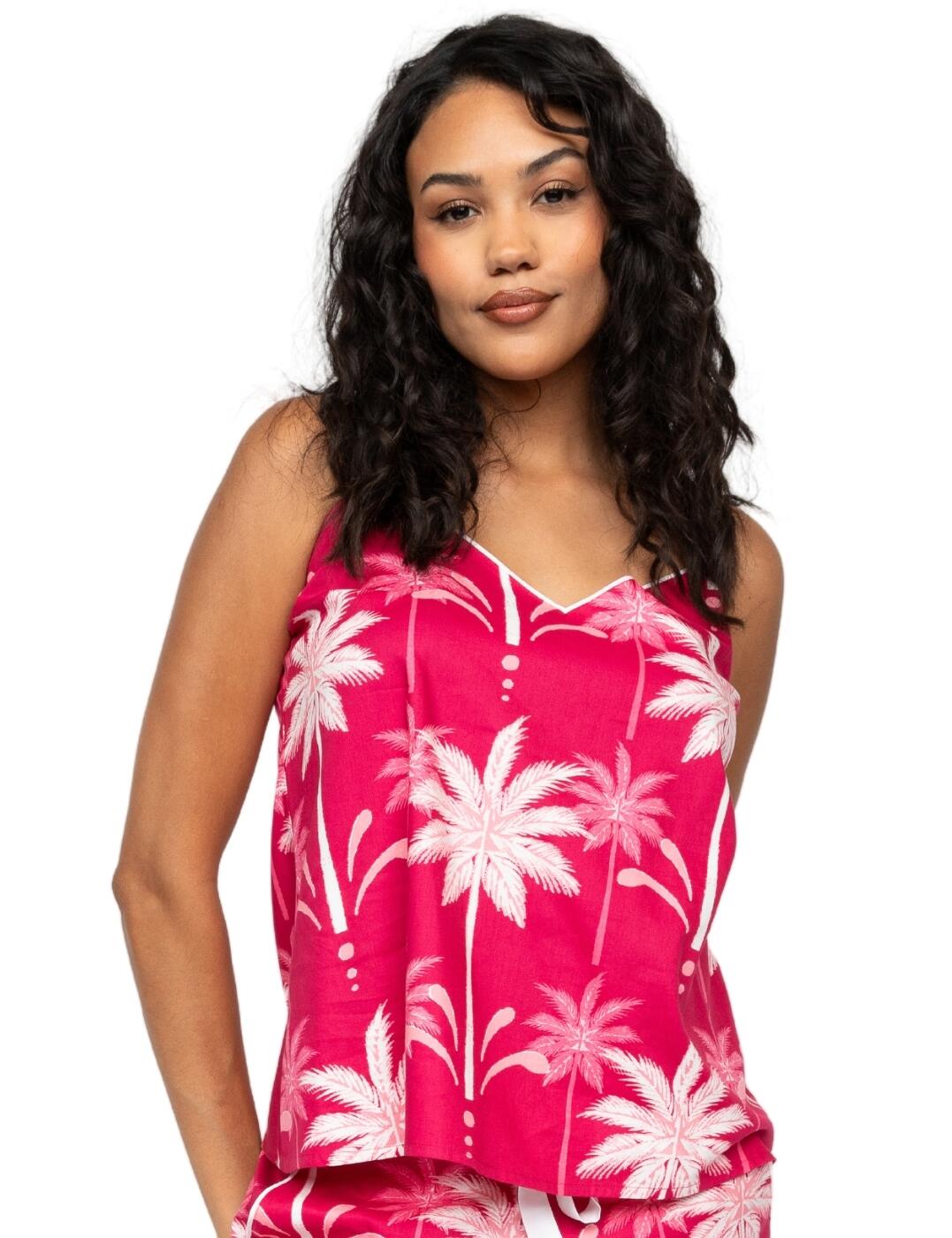 Sit back and relax while wearing the Cyberjammies Kayla cami top. Featuring a vibrant tropical palm print, this cami top will transport you to paradise every time you slip it on. With its v-neckli…
