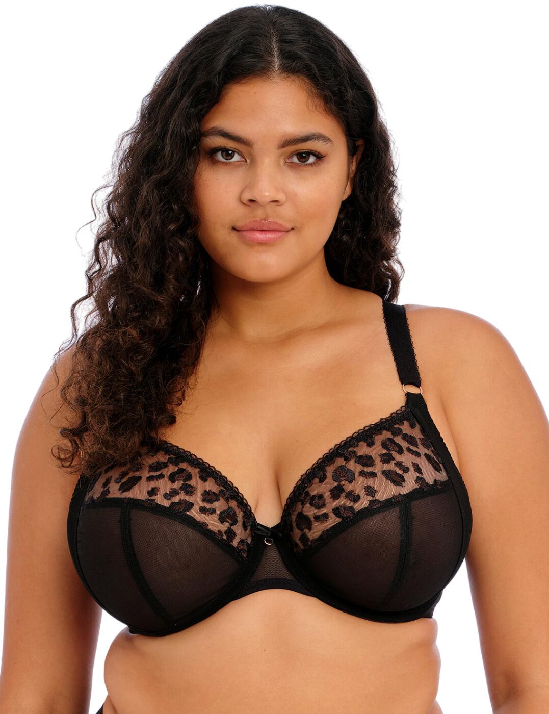 If you’re looking for lingerie that is both comfortable and fashion-forward, then the Elomi Namrah plunge bra is perfect for you. This bandless style has no fabric underneath the cup to prevent any roll up and it features an elasticated neck edge for ease of fit. The top cup embroidered design incorporates a leopard spot pattern that is sure to draw attention and the bow with metal ring detail across the centre front adds a touch of glamour. The soft fold over elastic overlay on the bottom edge of the underband and centre gore will give all-day comfort while the rose gold metal apex rings add a chic look. And don’t worry about support – this bra has underwired, non-padded cups, and a hook and eye closure so it’ll stay in place even when diving off that high dive! With its plunging neckline, you’ll be confident knowing your curves get extra flattering attention. So why wait? Get ready for style with class with the Elomi Namrah plunge bra today!