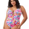 Take a trip to tropical style in this plunge bikini top from the Savaneta collection by Elomi. Featuring lightweight fabric with a vibrant tropical print, this underwired bikini top is the perfect companion for any poolside getaway. The top is fully lined with light, supportive fabric for comfortable wear, with concealed elastic along the flattering neckline for ease of fit. Non-padded cups and a strong, supportive cradle accentuate your natural shape so you can feel your most confident while sunbathing this season. Fully adjustable shoulder straps and a plastic clasp closure ensure a custom fit that’s just right for you. Matching bikini bottoms are also available for a complete, cohesive look.