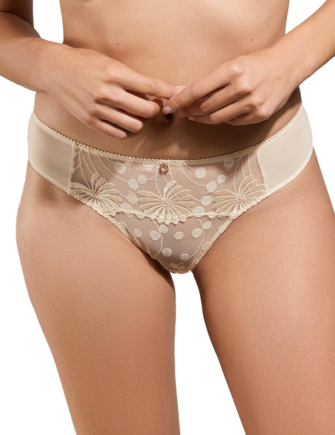 Embrace a chic and feminine addition to your wardrobe, the Empreinte Tess brief. Crafted with utmost attention to detail, this classic brief features a low-rise waist that flatters and accentuates your curves in all the right places. The delicately semi-sheer tulle adds a touch of sensuality, while the embroidered polka dot and floral design create a stunning and feminine look. But that’s not all, this brief also boasts decorative elastics on the waist, adding a touch of charm to the overall design. Sheer mesh throughout not only adds a hint of flirtiness but also ensures ultimate comfort and breathability. For those who appreciate moderate rear coverage, this brief is the perfect fit. To enhance your lingerie game even further, we offer matching coordinates for a complete and coordinated set.