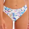 Turn heads by the pool this season with the V-neck swimsuit with adjustable leg from Fantasie’s Cala Macarella collection. This eye-catching swimsuit is adorned with a vibrant tropical print that’s perfect for anyone looking to liven up their holiday wardrobe. Its flattering V neckline is complemented by built-up shoulder straps, offering a sleek silhouette that enhances your natural shape. With a concealed underwire and non-padded cups, you can feel supported and confident all day long, while the fully lined interior promises comfort. At the side, adjustable ties allow you to customise your rear and leg coverage to suit your taste, whether you’re maximising tanning potential or looking for a more modest fit, while a flattering ruching effect on the tummy area adds an extra touch of elegance. Completed with a low scoop back for easy pull-on wear, this swimsuit is even better when paired with matching Cala Macarella coordinates.