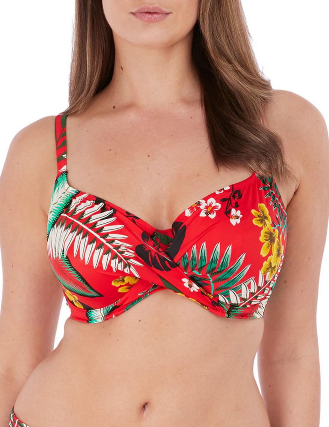 This full-cup bikini top from Fantasie’s Vilamoura range is vibrant and fun, with a chic wrap-over design and a bright botanical print for a feminine touch. The cups are underwired to provide supp…