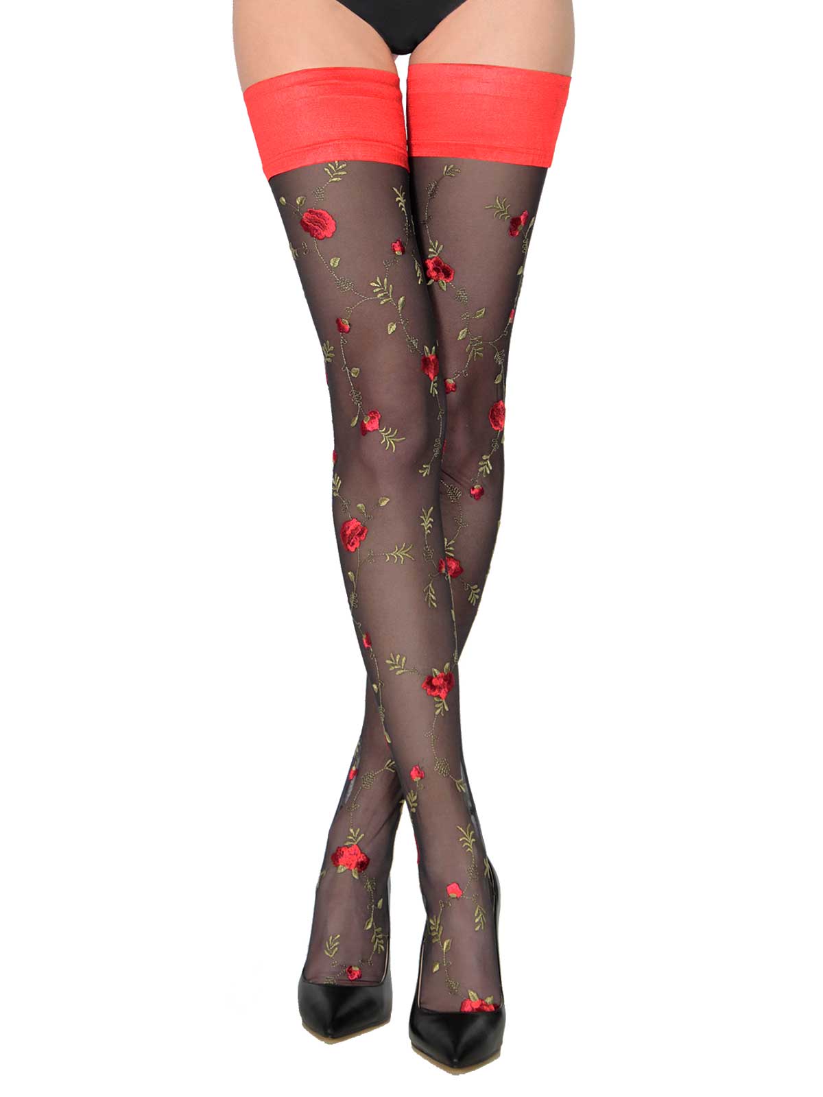 As enchanting as a work of art and as charming as a wildflower garden, FIORELLA takes the eternal beauty of the rose and plants them artfully across your legs. An air of vibrancy and renewal arises, reminiscent of the beautiful blooms of spring, as your legs are embraced and carved in all the right places – the world is your oyster, and you are ready to take it on in your unique, masterpiece style.s pair of stockings will bring your wardrobe to life. FIORELLA at a glance: Stunning red band Crafted with Italian tulle Intricate back seam Timeless elegance Invisible toe Product Details Origin Italy Category Thigh Highs Denier Light (10-20) Pattern Yes Accent Back seam Invisible Toe Yes Band Type Solid Band Height 3.25 in / 82 mm Materials 61% Nylon, 18% Viscose, 12% Spandex, 9% Polyester, Silicone grip on band Occasions Formal, Party, Wedding Guest