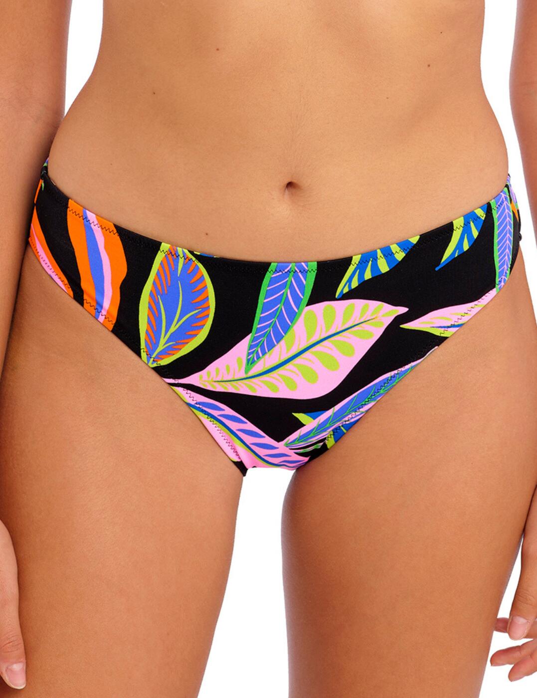 Welcome to sunny days and balmy nights in the Freya Desert Disco bikini brief! This midi bikini brief is the perfect way to stay cool and look great all holiday long. The tropical leaf design brings a touch of the exotic to any beach, and the mid-rise waist and high leg cut make it as flattering and comfortable as can be. The moderate rear coverage means you don t have to worry about accidentally showing too much skin and feel confident. Plus, the matching coordinates available mean you can look chic and put together while you re lounging on the beach or by the pool.