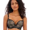 A stunning geometric styled bra your lingerie drawer is calling out for. This high-apex bra comes to you from the Freya Fatale collection by Freya. The stretch geometric printed mesh creates a plu…