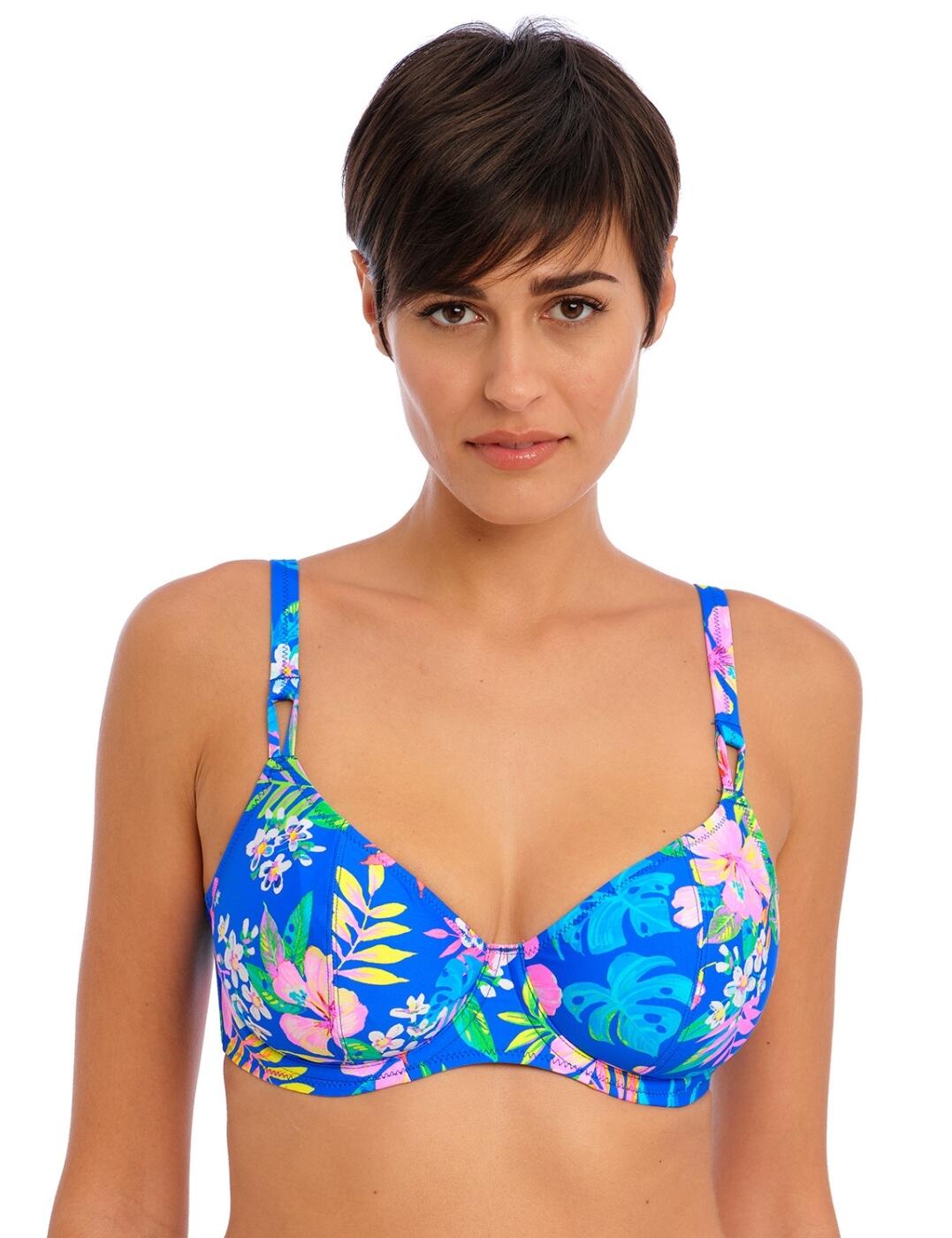 Get ready for some sun and enjoy the perfect beach day with Freya’s Hot Tropics plunge bikini top. This tropical floral plunging design is combined with underwired support for optimal all-day comf…
