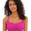 When you step aside for a little breather while you’re on the beach or by the pool, try on this mini dress from the Sundance line by Freya for a chic look. This piece is made with a semi-sheer crochet fabric decorated with a trendy geometric pattern, giving you a fashionable boho vibe. This sleeveless design reaches approximately mid-thigh. With the semi-sheer material and deep plunging neckline, it is sure to keep the eyes on you. The beach dress closes at the front with slim ties for a choice of fit while subtly accentuating your waist. Finished off with a stylish cross-over panel at the front, this piece is sure to become a new favourite.