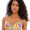 Be star of the poolside with Freya’s Tusan Beach collection. With bright colours to match any rainbow, this watercoloured-like print is so rich in colour it is bound to add vibrancy to any suitcase. Designed to be as comfortable as possible, it is a non-wired bikini top but has concealed powernet-lined cups to provide that shape and support you may still desire. The back fastening is adjustable for ease of fit and the split underband comes with multiple clasp sizes for those who wear larger sizes. Snap the look by matching it with other available items in the Tusan Beach range.