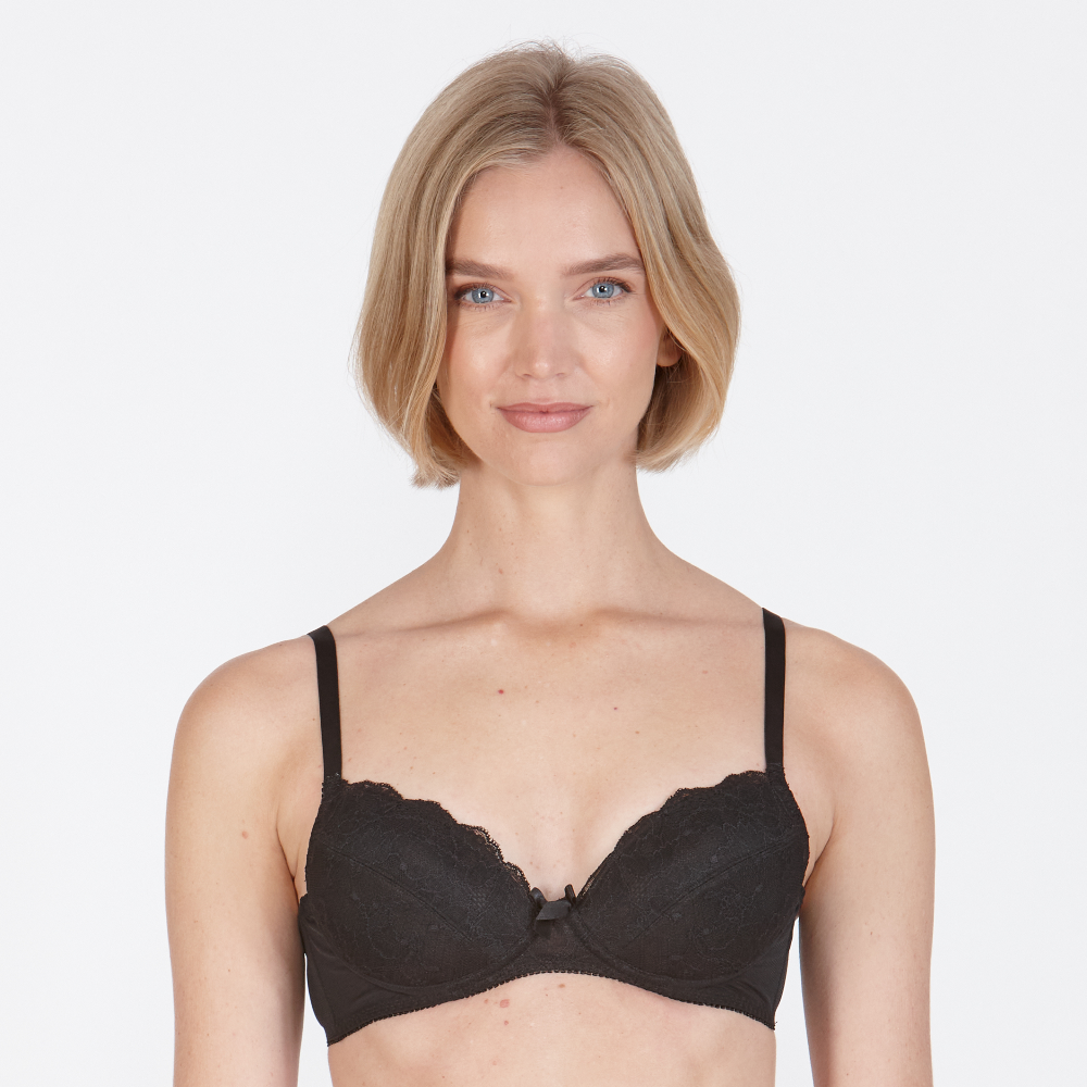 Discover an unparalleled Comfort and Confidence for Petite Figures with our Little Women Amour Non Wired Ultra Padded Bra. Little Women. Classic LW style. Ultra fixed padding – enhances your cup size by up to 3 sizes. Non-wired. Adjustable longer straps as standard. Back fastening with 3 hooks long & 2 hook wide. Lace finish with lace mesh wings. Designed with smaller busts in mind. Matching brief available. Material:. 72% Polyamide 20% Cotton 8% Polyurethane. Available sizes:. 32AAA – 44AAA. 30AA – 44AA. 30A – 44A. Product Code: LWAMOBRA