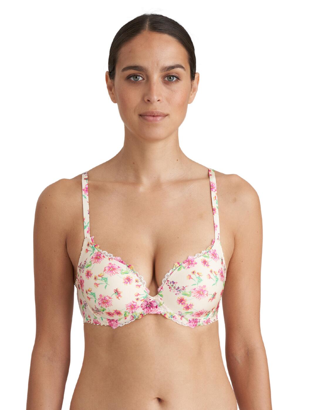 Treat yourself to this romantic heart-shaped padded bra from Marie Jo’s Chen range. This padded and underwired bra is perfect for your lingerie collection with its amazing fit to all your curves and stunning cleavage. It features adjustable straps and a classic hook and eye fastening to fit your body flawlessly while also having soft and smooth material this bra is ideal for under any piece of clothing. The bra has a romantic floral pattern and scalloped edges for that flirty and sexy touch while still feeling comfortable all day long. Complete this look with the matching coordinates from Marie Jo’s Chen line.