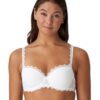 Delight in the luxurious comfort that the Christy range from Marie Jo can bring you and add this full-cup bra to your lingerie collection. The non-padded underwired cups ensure that your bust is supported while still maintaining a comfortable fit. This bra is made out of semi-sheer material with the cups covered halfway by a gorgeous lace fabric, adding an opulent feel. In the centre of the bridge, there is a decorative bow added for a final touch. Hook and eye back closure and adjustable shoulder straps give you the freedom to adapt this bra to your most comfortable fit.
