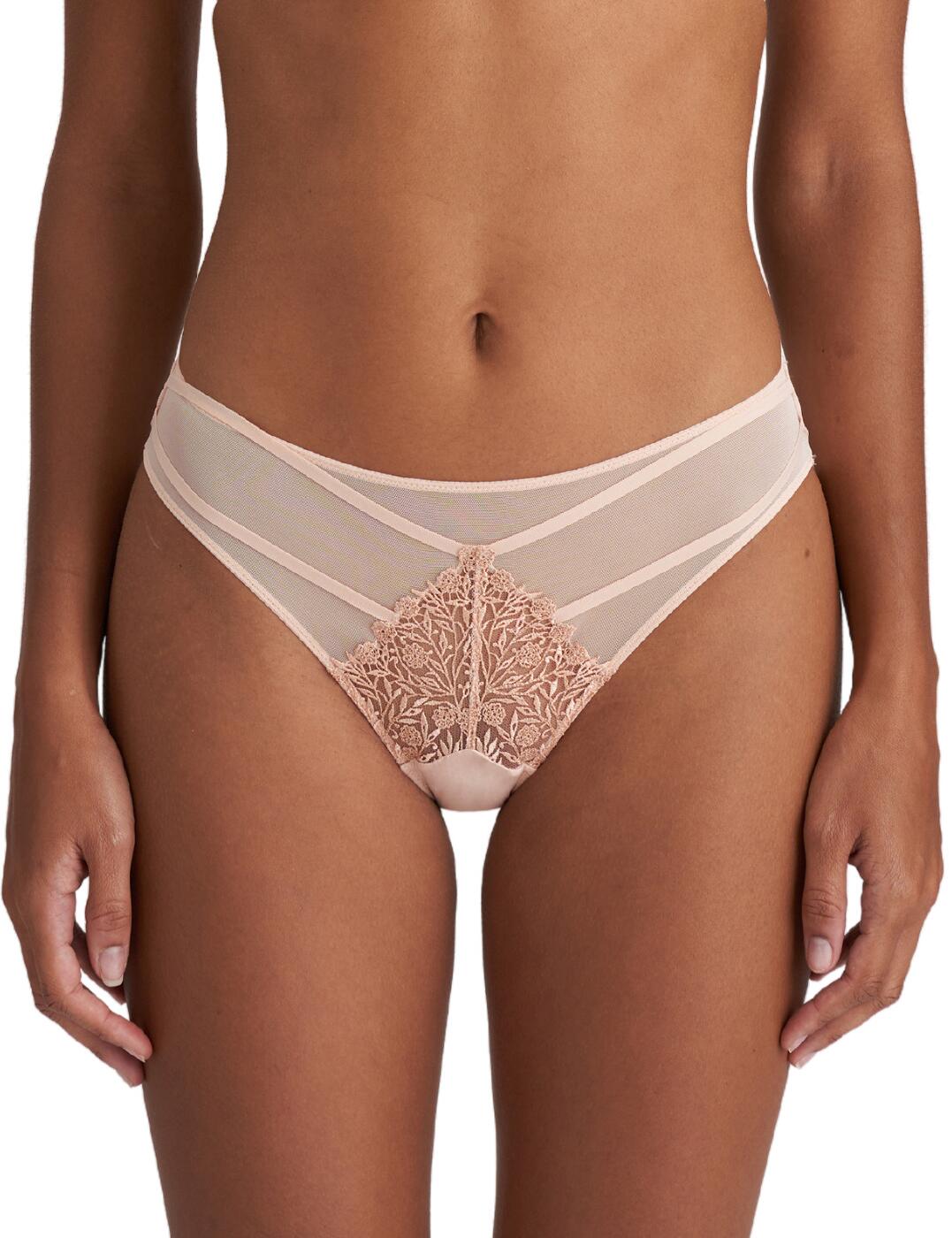 Embrace your femininity with these Rio briefs from Marie Jo’s Danae collection. The semi-sheer tulle front is embellished with delicate floral embroidery and a chic banded design for a fashion-forward, elegant look. The rear is opaque for modesty, with a mid-rise waist and moderate rear coverage giving a classic, comfortable fit. Pair these briefs with a matching bra from the Danae range for a charming combination.