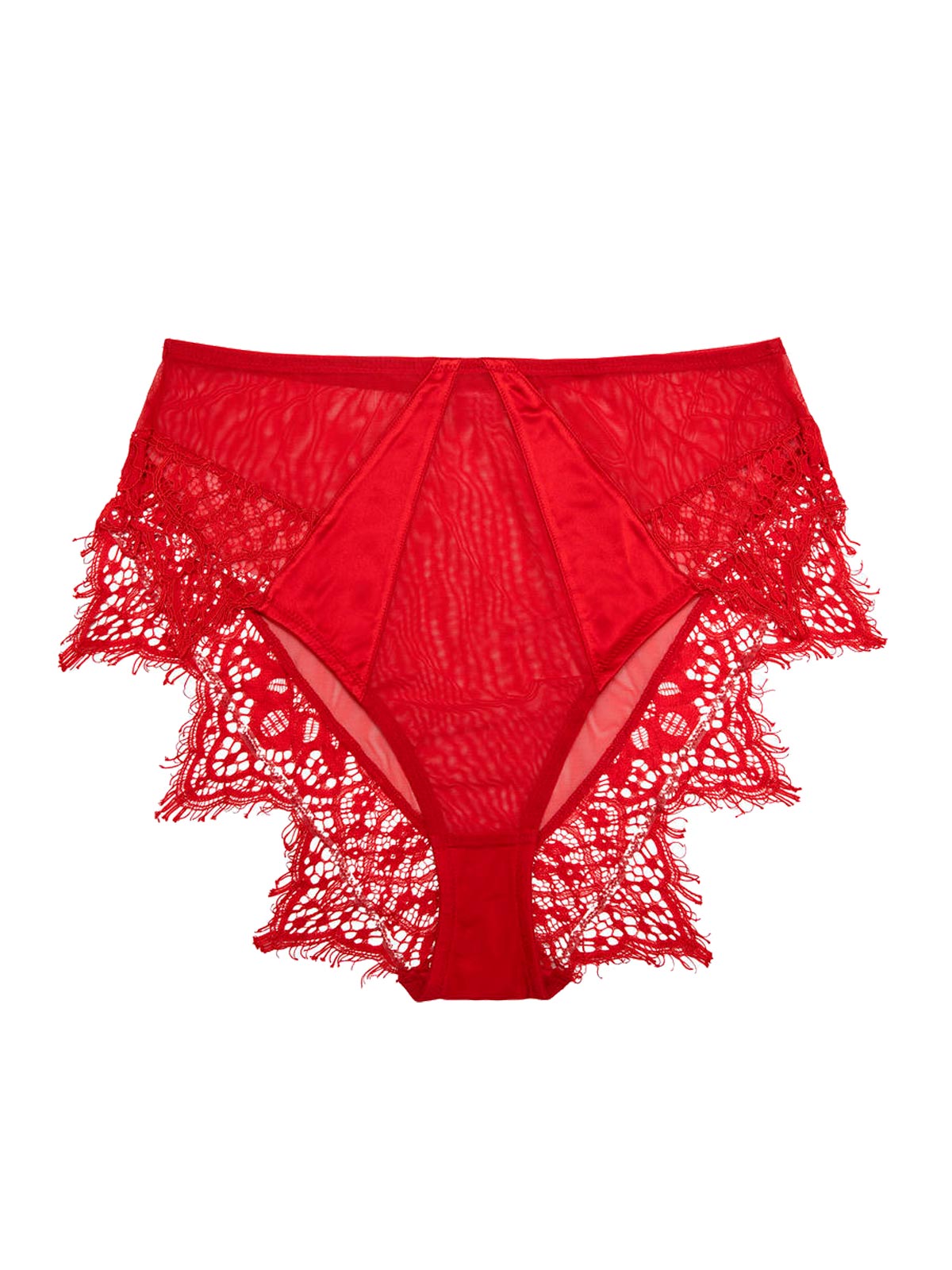 Lacy is racy with Melina. Drawing on the ultra-feminine and rising high to hug your wonderful hips, these panties make sexy easy and oh-so-comfortable. Red hot in both color and design, it features satin panels and fiery red eyelash lace over the trim that will hug your hips beautifully. Melina at a glance: Made with red satin and lace High waisted style Mesh back 100% Cotton gusset Product Details Category Panties Materials Lace: 100% Nylon Satin: 92% Polyester 8%, Elastane Mesh: 88%, Nylon 12% Elastane Gusset, Liner: 100% Cotton Excluding Trims Occasions Love, Wedding