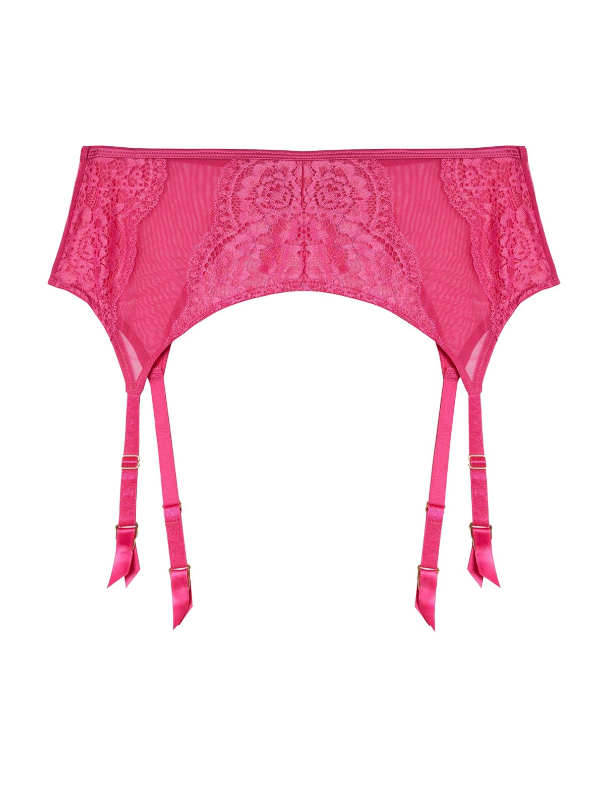 Introducing the lady of garter belts. A little bit vintage, a lot saucy, and oh-so bold, bright, and beautiful, this suspender is full of powerful lady-like charm. The vibrant color lace is embellished with intricate and artful embroidery that is tantalizingly punctuated by transparent mesh panels! This hot pink smoke show is framed by sultry satin lining that leads into gorgeously striking straps that complete this Moulin Rouge-style set. Put your lovely legs in the spotlight by pairing this gorgeous garter belt with the equally gorgeous VienneMilano LUANA stockings. Ophelia at a glance: Fan-lace style corded lace-appliqué Matching black satin elastic on the waist Four adjustable suspender straps Stockings not included Product Details Category Garter Belts Occasions Love, Wedding