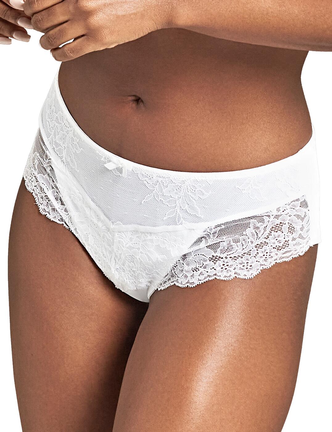 An everyday brief was given beautiful detailing to make for a feminine brief you can feel comfy and confident in all day! The Ana range at Panache offers this classic cut brief, made with delicate semi-sheer stretch legs at the front legs for an accommodating fit and elegant style. The rest of the brief is opaque for modesty and everyday wear. The rear is a luxuriously soft and seamless look with no detailing, giving it great invisibility under clothing.