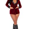Included Vinyl Coat with Bunny Buttons and Faux Fur Trim, High-Waisted Shorts with Flocking Bunny, Faux Fur Belt with Bunny Buckle, and Vinyl Hat with Faux Fur Trim and Feather with Bunny Buckle You’ll command any room when you step into our new 4PC Playboy High Roller outfit. This ensemble exudes power and confidence, from the top of the feathered hat to the open-fronted hemline. The bright red vinyl coat trim with leopard-print faux fur on the wide collar and pockets. The bunny-shaped buttons sparkle in gold and perfectly match the bunny pin on the included hat. The hat is a dramatic addition to this ensemble, with a high top and wide brim, detailed with faux leopard fur and a stylish feather. The matching leopard-print belt has a large bunny buckle and helps hug and shape your waist in this stylish jacket. The front of the jacket has a wide cutout, giving a clear view of the high-waisted shorts with a bunny print included in the ensemble. The 4PC Playboy High Roller outfit is the perfect outfit for a confident, sexy woman who wants to make her presence known at a Halloween party, rave, or any other affair. Add it to your closet, and strut it with confidence everywhere you go. This outfit is available in sizes S, M, L, and XL.