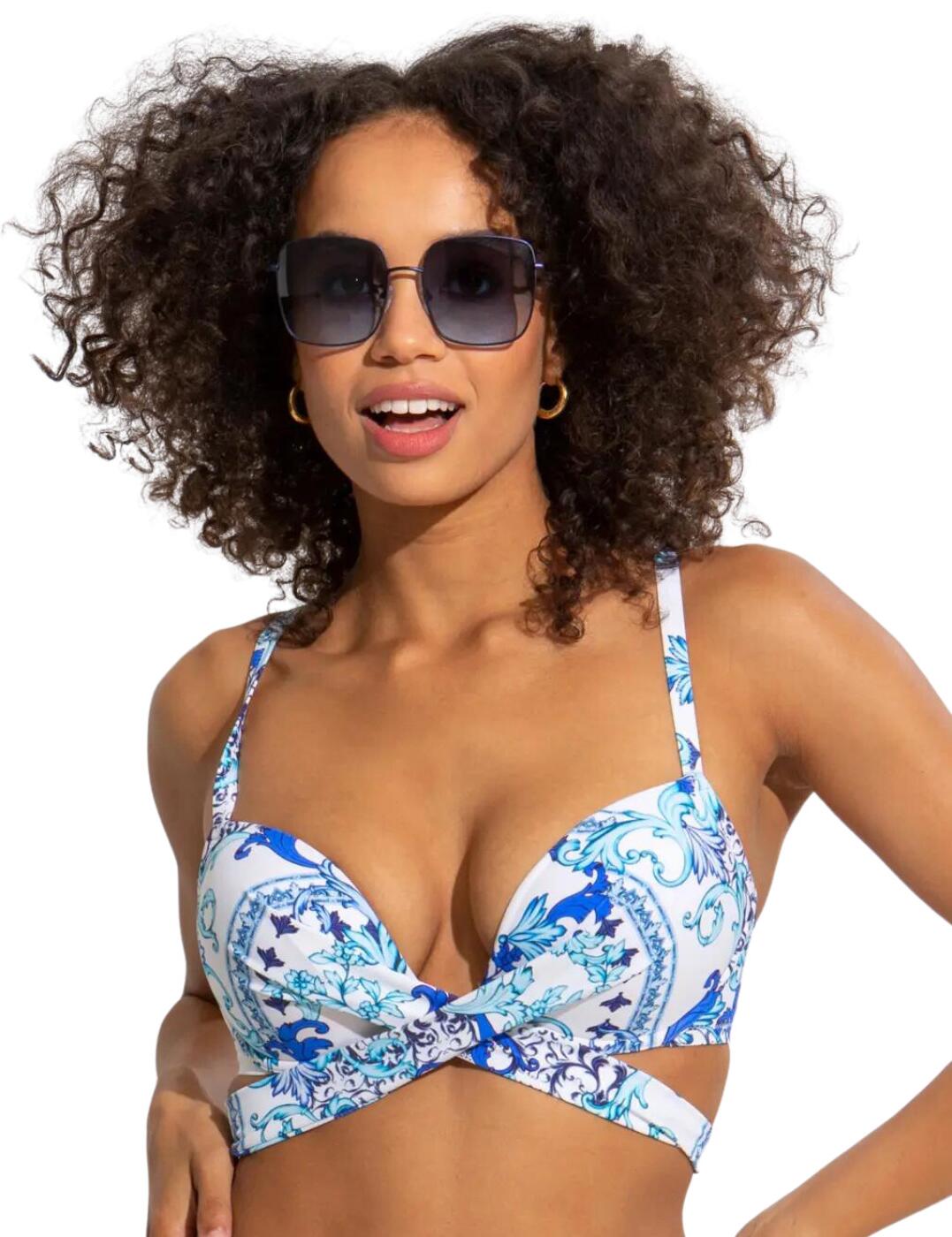 Pour Moi Amalfi Wrap Around Bikini Top – White/Blue – 32D