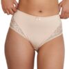 The Dark Romance deep lace-up brief gives you a flattering and comfortable fit whilst looking effortlessly glamourous. The high-rise flatters and conceals your midsection while highlighting your curves. The elasticated waist provides a comfortable and secure fit. The contrasting light panel lends a pop of colour and adds dimension to this brief. The rear has a keyhole cut-out with lace-up detailing that draws your gaze. Semi-sheer scalloped lace hugs your curves. The high rise provides cheeky bikini style coverage. Charming details like the velvet bow on the waistband add a luxurious look to these briefs. Wear with the matching lingerie from the collection for a coordinated look.