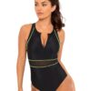 Your perfect addition to any swimming occasion. Perfect for holidays as it styles a zip front which can be worn closed for the colder day or open for the warmer. The piece also styles short sleeves, with contrasting print colour underneath that descends the sides. Full rear coverage offers you modesty as well as comfort within the swimsuit. An added tummy control panel is also hidden inside to offer you the ultimate flattering look.