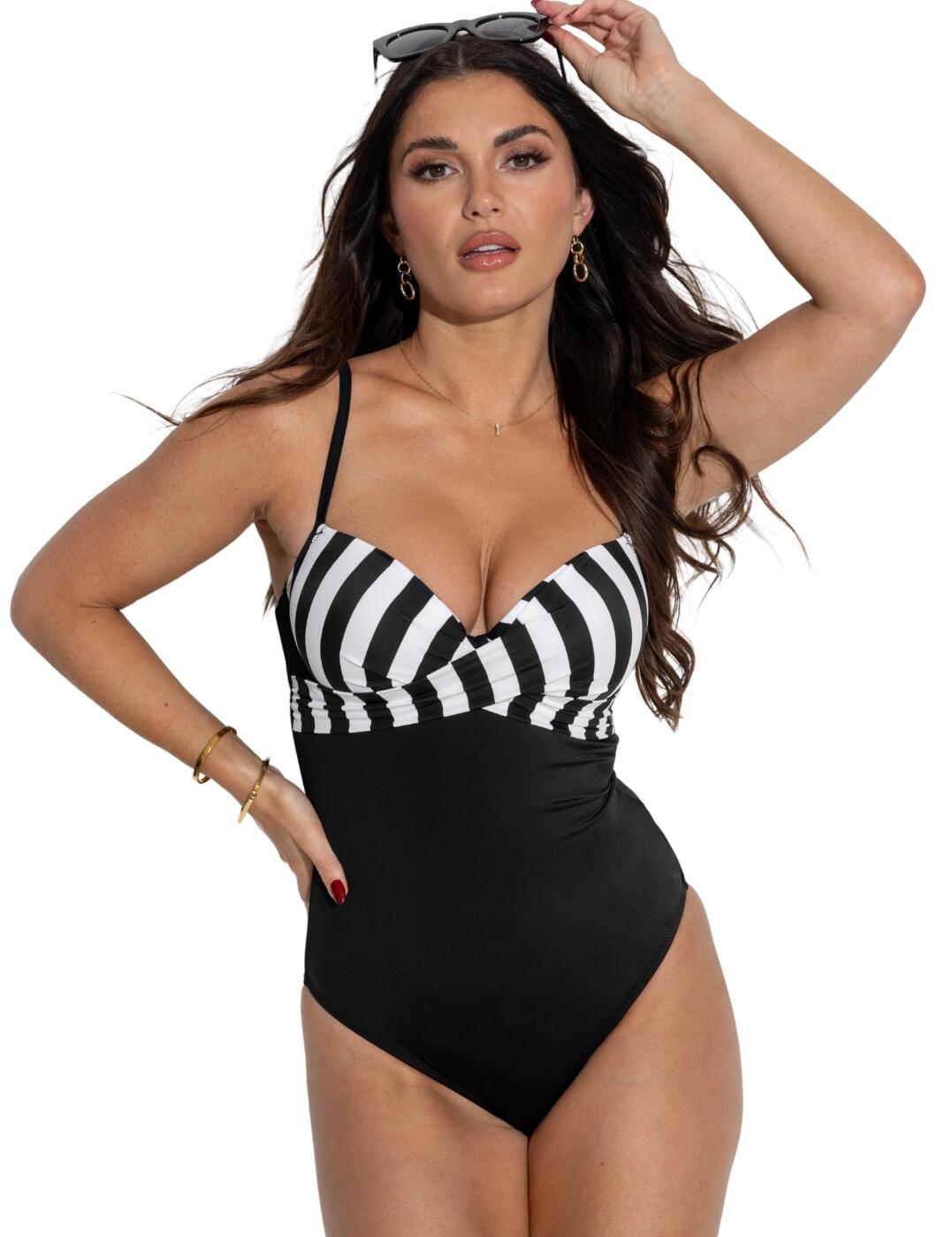 Pour Moi Free Spirit Lightly Padded Underwired Swimsuit – Black/White – 32C