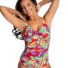 Pour Moi Heatwave Lightly Padded Underwired Control Swimsuit – Aqua Floral – 32D