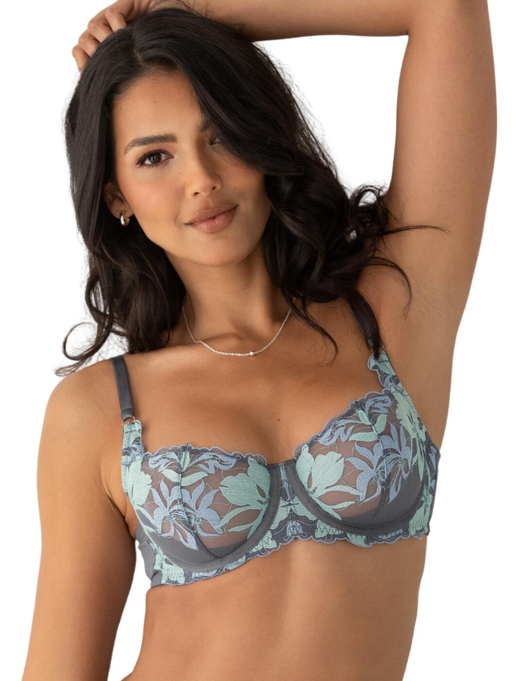 Pour Moi Roxanne Embroidered Underwired Bra – Slate/Mint/Blue – 32C