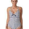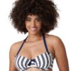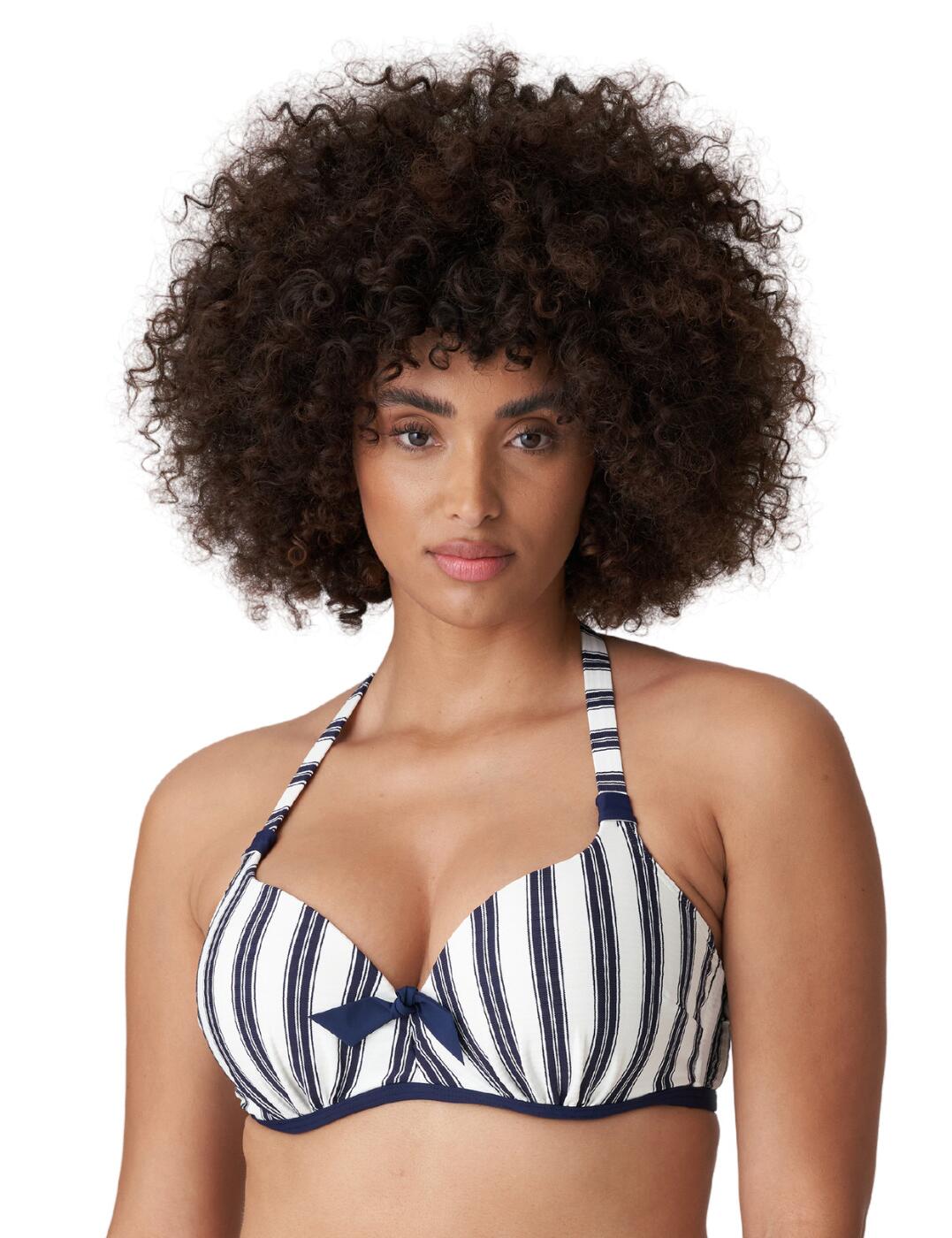 How could you resist such a flattering bikini top? The heart shaped bra creates a fuller looking bust whilst also offering the perfect uplift. The padding combined with the underwiring ensure a secure look for whatever your holiday activities may be. Flattering stripes create a curve enhancing look whilst combined with the large navy bow in the centre of the bust create a nautical themed style. Ribbed terry cloth allows the piece to be soft to the touch whilst still incorporating a modern and stylish element.