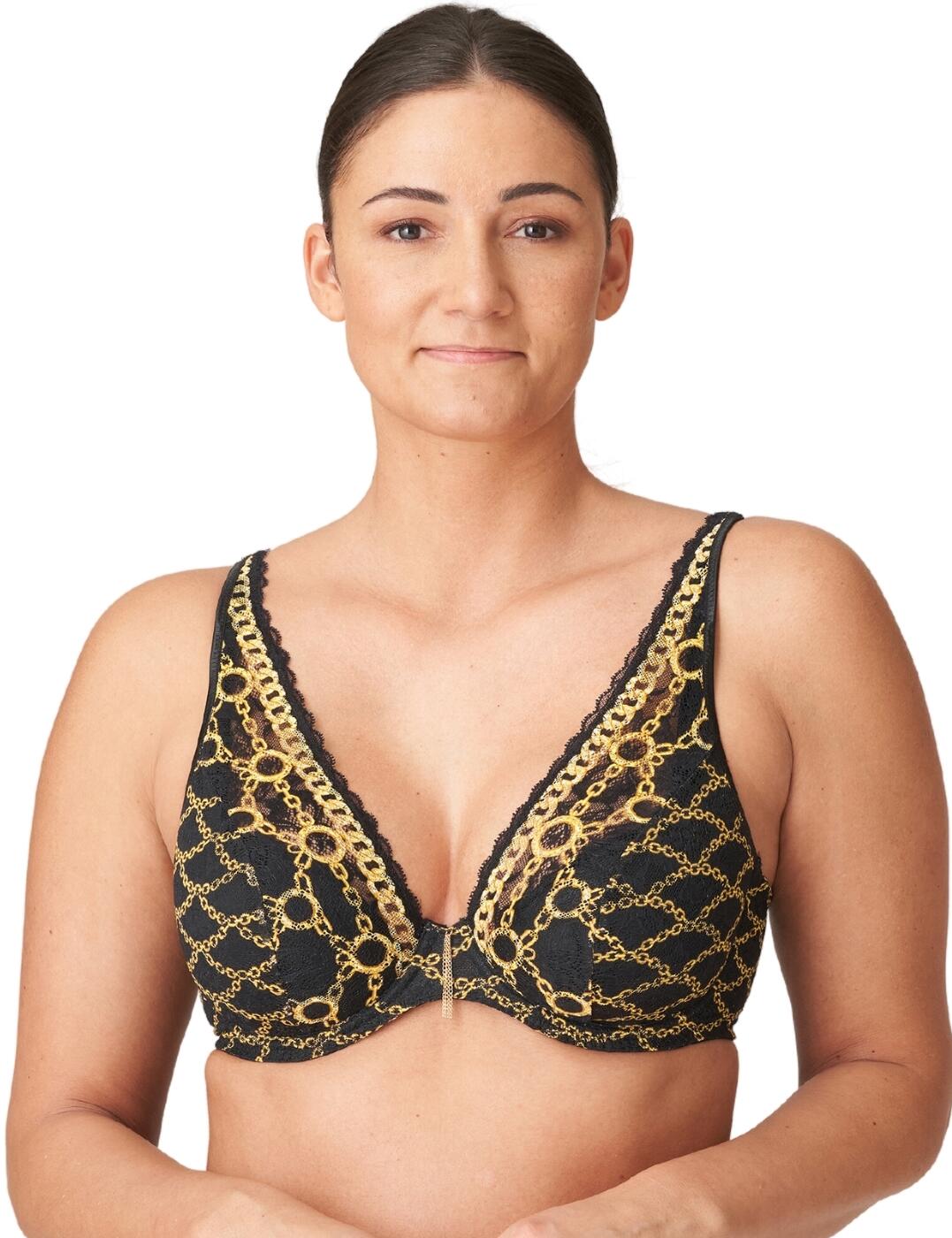 The Prima Donna Twist Amsterdam AV half padded plunge bra is for women who are all about luxury and glamour. Featuring a glamorous gold chain print, this stunning lingerie piece highlights the cle…