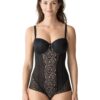The East End range by Prima Donna combines the brands recognisable luxurious feminine lingerie with seventies-inspired lace for a timeless yet retro collection. This body flaunts premium semi-opaque geometric lace that adorns the cups, legs, and back for an indulgent sultry style. The classic body shape has a slimming contour design for a seductively curved silhouette. A cheeky moderate back coverage and plunging neckline cut add to the sexy style. The soft stretch fabric and slip-on design allow for ease of wear. Underwiring offers support and the adjustable straps allow for the perfect fit.