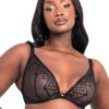 Get ready to take your lingerie look to the next level with the Scantilly by Curvy Tough Love balcony longline bra. This sexy pick is designed to give you an unbeatable look that’s as comfortable as it is stylish. The longline design ensures just that, giving you a supportive underwire and balcony cups that will make sure you’re looking and feeling your best. The sheer mesh centre and cups are added extras while the barbed wire embroidery makes for a rebellious, edgy twist. Stretch pleather adds an on-trend element while a centre rose gold barbed wire charm gives this piece a particularly special touch. You’ll love the safety of the thick adjustable straps and large hook-and-eye closure down the back. Taking things up to a whole new level? Complete your sexy lingerie set with the matching tanga brief!