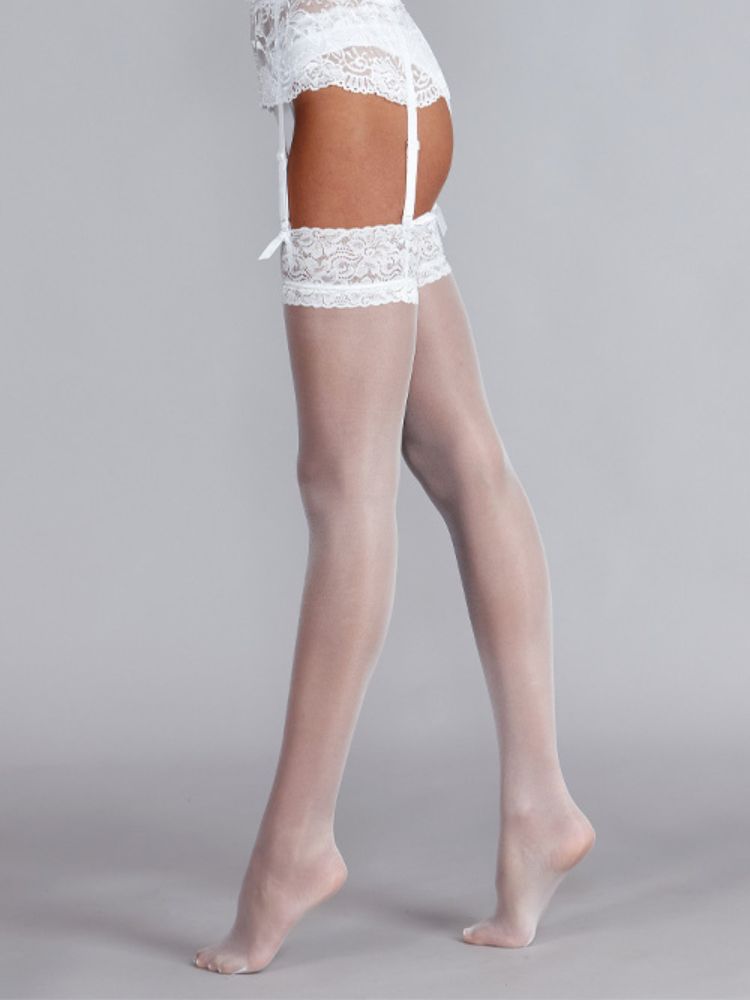 Silky sheer stockings feature a floral lace top, stretch recover technology, a sandal toe and a smooth, super shine finish. These 15 denier luxury stockings offer outstanding value with no compromise on quality. 88% Nylon 12% Spandex